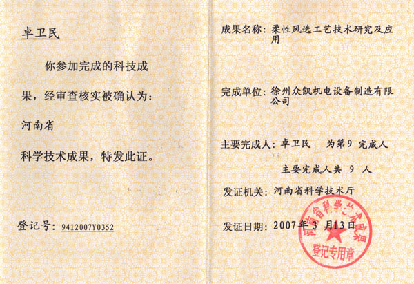 高新技術(shù)產(chǎn)品之風(fēng)選