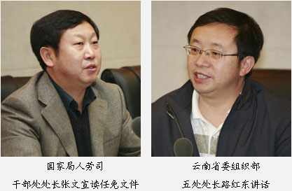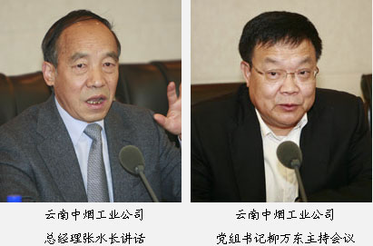 國家煙草專賣局人事司副司長劉景珍、云南省政府副秘書長蔣兆崗、云南省委組織部五處處長路紅東、云南中煙工業(yè)公司總經理張水長、黨組書記柳萬東、副總經理朱紹明、邱建康、姚慶艷、李天飛、顧波、李光林,以及集團領導、集團省內各生產廠領導、集團各部門管理人員參加了大會。會議由云南中煙工業(yè)公司黨組書記柳萬東主持。