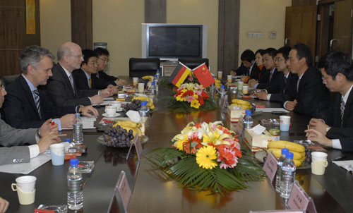 煙草在線紅云紅河消息 3月12日,德國(guó)虹霓公司CEO索姆·克里斯托弗、遠(yuǎn)東董事總經(jīng)理米羅斯、遠(yuǎn)東總經(jīng)理吳振寰一行到紅云紅河集團(tuán)訪問,與集團(tuán)副總裁武怡就集團(tuán)技術(shù)改造工作進(jìn)行了交流,雙方均表達(dá)了繼續(xù)加強(qiáng)合作的良好意愿。