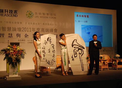 本次“生命智慧論壇”設(shè)有3個主題演講,分別是《生命智慧》、《生命智慧與企業(yè)價(jià)值創(chuàng)新》和《智慧、健康、幸福與云南》。在演講中,南開大學(xué)齊善鴻教授用道家思想詮釋了生命的真相與幸福的獲得;四川大學(xué)教授格桑澤仁則用優(yōu)美動聽的語言,與聽眾分享如何才能獲得“智慧、健康、幸福”。央視主持人王寧、作家王晴、著名探險(xiǎn)家金飛豹等同臺與聽眾分享了關(guān)于生命智慧與健康幸福的體悟。
