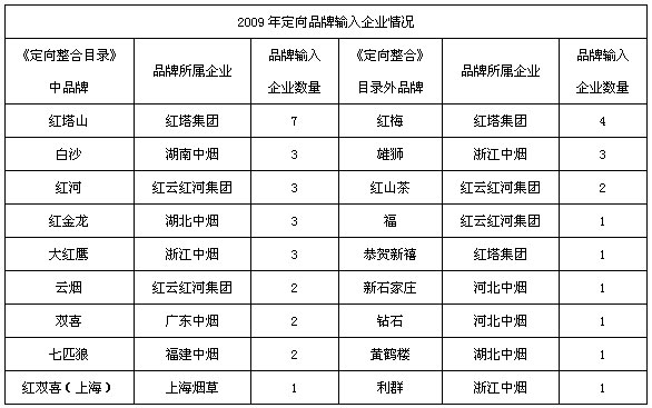 2009年在新煙稅類煙標(biāo)準(zhǔn)劃分下,各強(qiáng)勢(shì)工業(yè)企業(yè)加大了對(duì)國(guó)家局《關(guān)于卷煙品牌定向整合的指導(dǎo)意見(jiàn)》的執(zhí)行力度。提升了品牌定向整合的層次(擴(kuò)量、提檔),煙草行業(yè)競(jìng)爭(zhēng)主體正發(fā)生了重大變化,繞十多個(gè)為主體的“集群化”競(jìng)爭(zhēng)格局正在逐漸形成。如云煙系集團(tuán)群將以“玉溪”、“云煙”、“紅塔山”、“紅河”四大品牌為核心,向四川、貴州兩翼擴(kuò)展,形成東北、西南、海南三位一體的格局。其中紅塔集團(tuán):2003年紅塔控股海南紅塔卷煙有限責(zé)任公司、紅塔遼寧煙草有限責(zé)任公司(下轄營(yíng)口卷煙廠、沈陽(yáng)卷煙廠),參股吉林煙草工業(yè)有限責(zé)任公司(下轄長(zhǎng)春卷煙廠、延吉卷煙廠);2008年11月8日,合并了原紅河集團(tuán)昭通卷煙廠,成為新的紅塔集團(tuán);2009年3月,川渝中煙和紅塔集團(tuán)共同成立中國(guó)長(zhǎng)城雪茄有限責(zé)任公司,由川渝控股,紅塔參股,股權(quán)比例大致為51%和49%。2009年8月,紅塔集團(tuán)市場(chǎng)營(yíng)銷中心東北分中心的成立,表明了紅塔集團(tuán)在跨省重組后,在品牌整合的基礎(chǔ)上進(jìn)一步推動(dòng)資源整合的決心。其中,新成立的紅云紅河集團(tuán)擁有昆明、紅河、曲靖、會(huì)澤、新疆、烏蘭浩特等七個(gè)卷煙廠。同時(shí),還控股山西昆明卷煙有限責(zé)任公司,參股內(nèi)蒙古昆明卷煙有限責(zé)任公司。目前整個(gè)云煙系生產(chǎn)規(guī)模近900萬(wàn)箱,擴(kuò)張后有可能達(dá)到上千萬(wàn)箱,成為中國(guó)煙草第一集團(tuán)群。