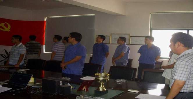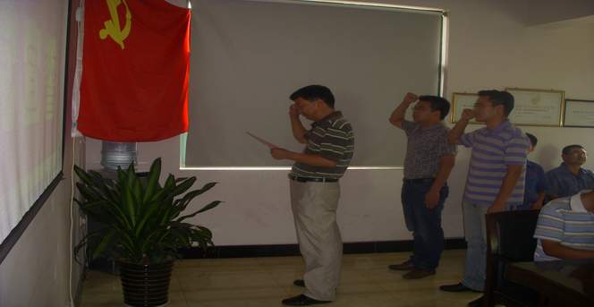 在紀(jì)念中國(guó)共產(chǎn)黨成立九十一周年之際,徐州眾凱公司黨支部于7月23日下午,為兩名預(yù)備黨員:楊進(jìn)成、楊鈺程,舉行隆重的入黨宣誓儀式。宣誓儀式在雄壯的《國(guó)際歌》聲中開(kāi)始。