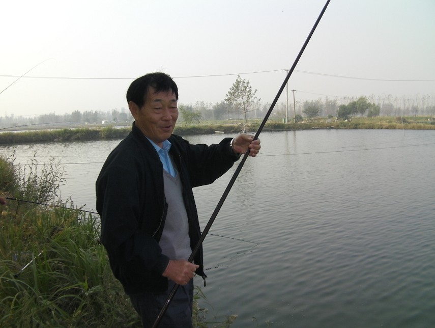 半小時后到達(dá)目的地。大家迫不急待拿出魚具,數(shù)十條魚竿分列池塘周圍,場面煞是壯觀。大家全神貫注,忙得不亦樂乎。投食,拌餌上食,串食,等浮漂,提竿,抄魚……上鉤魚兒 “噼啪”的拍水聲和大家的歡呼聲此起彼伏,映襯著一池碧水別有情趣。