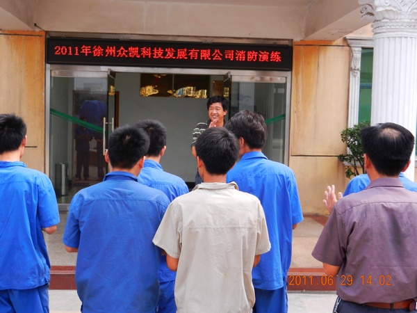 2011年6月29日下午2點,徐州眾凱公司為進一步貫徹國家“安全生產(chǎn)月”的相關(guān)要求,根據(jù)上級統(tǒng)一部署,舉行消防演練。此次演練成立了專門的領(lǐng)導小組,由公司全體人員參加,王總親自主持并提出要求。