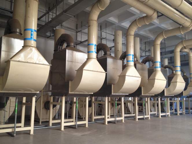 卷煙廠絲束成型車間的絲束成型機和發(fā)射機在運行中會產(chǎn)生大量的飛花和粉塵,并在空氣中擴散,而產(chǎn)塵源又不斷地產(chǎn)生粉塵致使整個車間粉塵密度會不斷的上升。長時間工作在這種場所中的工人,吸進肺部的粉塵量就會很多,當達到一定數(shù)量時,就能引起肺部組織發(fā)生纖維化病變,最終導致塵肺;空氣中的粉塵落到機器的轉(zhuǎn)動部件上,會加速轉(zhuǎn)動部件的磨損,降低機器工作的精度和壽命;空氣中的粉塵進入絲束產(chǎn)品和煙用嘴棒成型過程中直接影響產(chǎn)品質(zhì)量。
