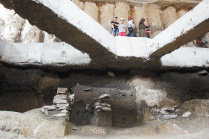 水泥框架下的漢代城門。