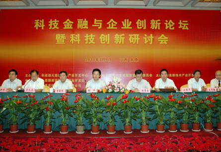 為推動科技金融事業(yè)的發(fā)展,引導(dǎo)包括金融資源在內(nèi)的創(chuàng)新要素向高新區(qū)的科技型企業(yè)集聚,指導(dǎo)企業(yè)運用科學(xué)思維、科學(xué)方法和科學(xué)工具來進(jìn)行科技創(chuàng)新,科技部火炬高技術(shù)產(chǎn)業(yè)開發(fā)中心、中國科技金融促進(jìn)會風(fēng)險投資專業(yè)委員會和太原高新技術(shù)產(chǎn)業(yè)開發(fā)區(qū)于2010年7月9日在太原召開了“科技金融與企業(yè)創(chuàng)新論壇暨科技創(chuàng)新研討會”?萍疾奎h組成員、科技日報社社長、中國科技金融促進(jìn)會風(fēng)險投資專業(yè)委員會主任張景安,國務(wù)院參事、科技部原副部長劉燕華,山西省副省長張平,山西省科技廳廳長廉毅敏,太原市及太原高新技術(shù)產(chǎn)業(yè)開發(fā)區(qū)管委會有關(guān)領(lǐng)導(dǎo)出席了本次論壇?萍疾炕鹁娓呒夹g(shù)產(chǎn)業(yè)開發(fā)中心副主任、中國科技金融促進(jìn)會風(fēng)險投資專業(yè)委員會秘書長修小平主持了論壇的開幕式。來自科技部、山西省政府、太原市政府和太原高新區(qū)管委會以及太原高新區(qū)內(nèi)的企業(yè)和金融機(jī)構(gòu)的代表共約300人參加了大會。
