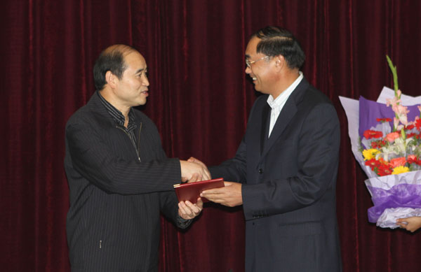 葛世榮校長為吳吟副局長頒發(fā)兼職教授聘書