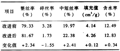 表1 改進(jìn)前后積絲盤(pán)內(nèi)煙絲的物理指標(biāo)對(duì)比①②③