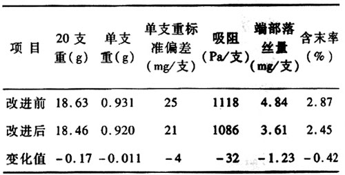 表2 改進(jìn)前后煙支物理指標(biāo)對(duì)比①②
