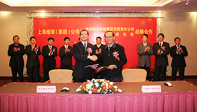 鄭州院閆亞明院長、羅登山院長助理等一行三人赴上海簽訂了《上海煙草(集團)公司與鄭州煙草研究院“中華”牌卷煙技術創(chuàng)新研究協(xié)議書》,國家煙草專賣局副局長李克明出席簽約儀式并作重要講話。李克明副局長指出,建立戰(zhàn)略合作伙伴關系適應了煙草行業(yè)新時期、新發(fā)展的需要。他要求各單位不斷促進工藝、設備的自主創(chuàng)新;努力提高設備的運行水平;講究實效,力求實現(xiàn)合作增值。
