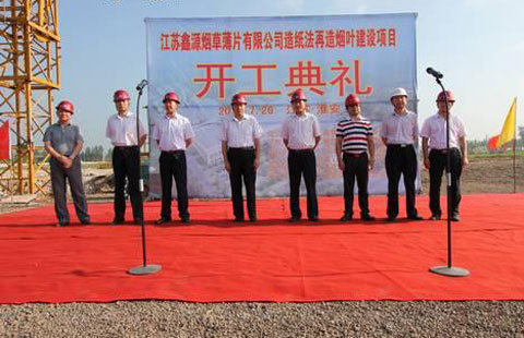 煙草在線據(jù)江蘇中煙消息報(bào)道 7月26日上午,江蘇鑫源煙草薄片有限公司造紙法再造煙葉項(xiàng)目施工現(xiàn)場(chǎng)彩旗飄飄、鞭炮齊鳴、機(jī)聲隆隆,項(xiàng)目土建一標(biāo)段正式開(kāi)工,揭開(kāi)了土建工程建設(shè)的序幕。鑫源公司全體干部職工、項(xiàng)目各參建方代表一同參加了開(kāi)工儀式。