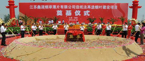趙洪順在奠基儀式上代表國(guó)家煙草專(zhuān)賣(mài)局、中國(guó)煙草總公司對(duì)項(xiàng)目奠基表示祝賀,他對(duì)江蘇中煙近年來(lái)取得的發(fā)展業(yè)績(jī)給予高度評(píng)價(jià)。對(duì)于項(xiàng)目下一步建設(shè),他要求,江蘇中煙要切實(shí)加強(qiáng)對(duì)項(xiàng)目建設(shè)的過(guò)程管理,積極做好造紙法再造煙葉的應(yīng)用準(zhǔn)備,在卷煙減害降焦方面取得更大的進(jìn)步和成效,在更高水平、更高層次上推動(dòng)品牌發(fā)展;江蘇鑫源要以打造“國(guó)內(nèi)一流、國(guó)際先進(jìn)”的造紙法再造煙葉生產(chǎn)線(xiàn)為己任,高標(biāo)準(zhǔn)推進(jìn)項(xiàng)目建設(shè),嚴(yán)格程序,規(guī)范運(yùn)作,狠抓工程建設(shè)質(zhì)量和進(jìn)度,全力打造“陽(yáng)光工程、廉潔工程、優(yōu)質(zhì)工程”,為江蘇煙草工業(yè)持續(xù)、健康發(fā)展,為淮安地方經(jīng)濟(jì)社會(huì)建設(shè)作出積極貢獻(xiàn)。